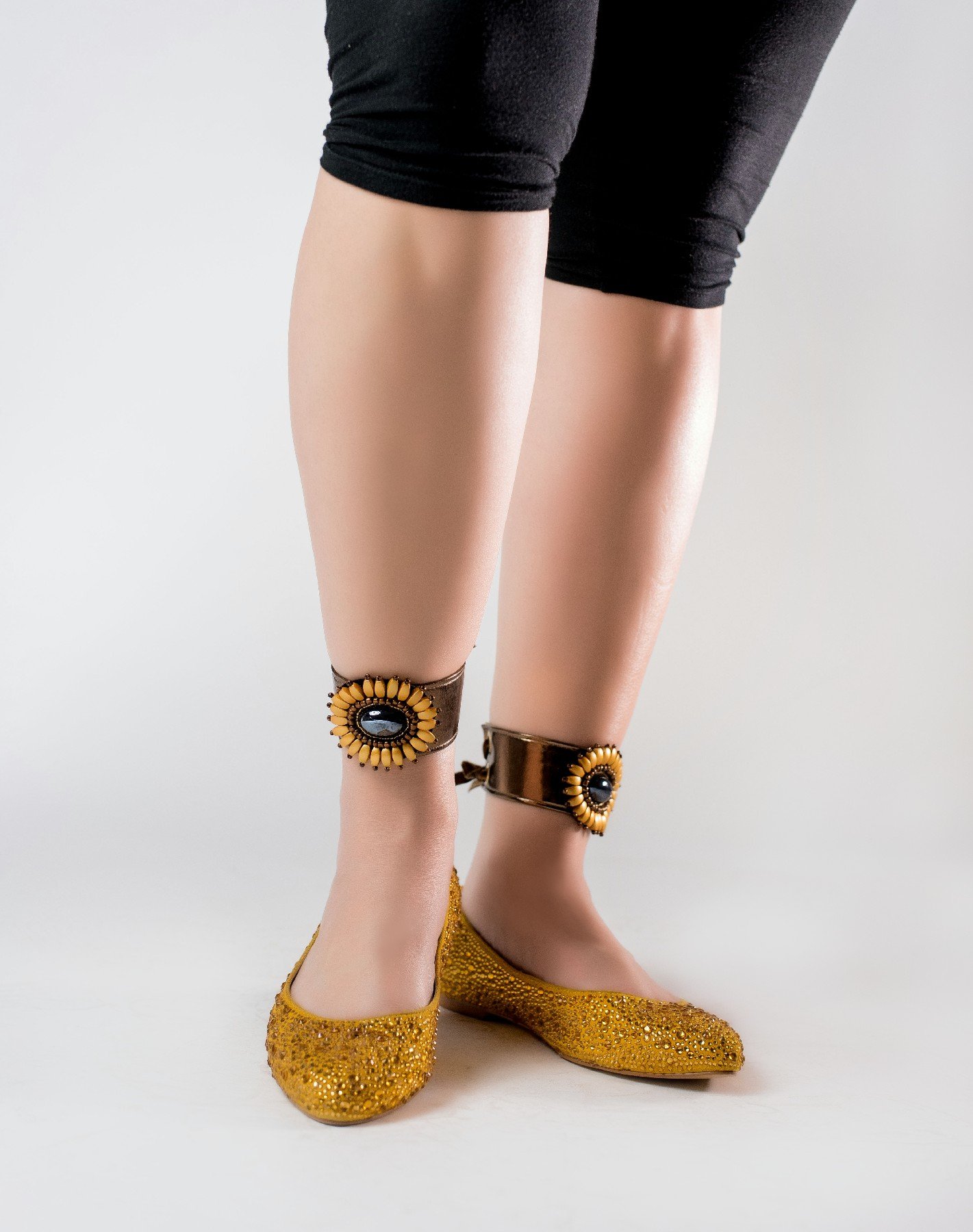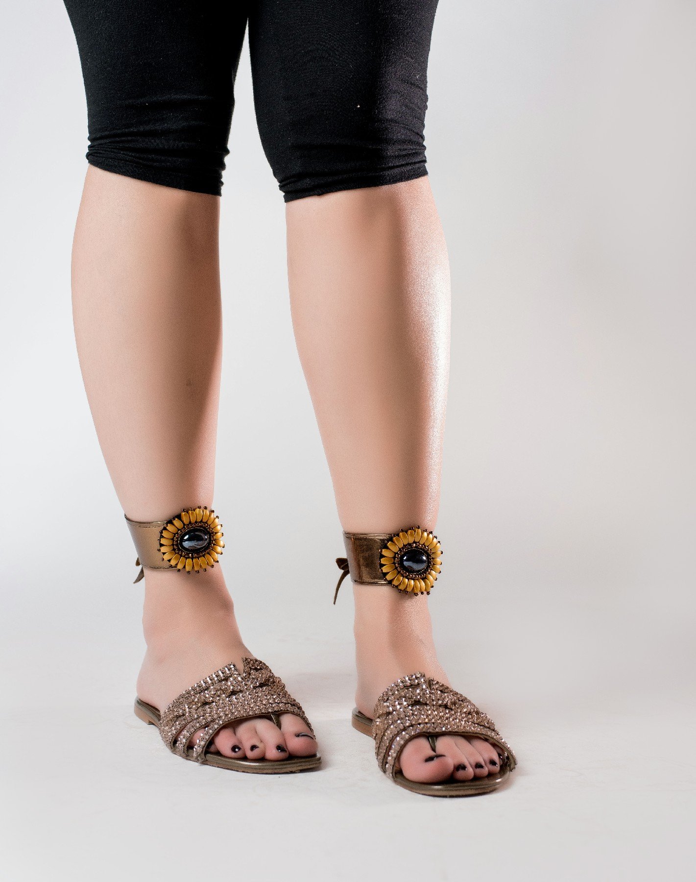 خلخال من الجلد البرونزي اللامع بتصميم زهرة دوار الشمس